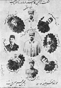 - مذاکرات مجلس شورای ملی ۲۶ فروردین (حمل) ۱۳۰۳ نشست ۱۱ - دربرگیرنده: شناساندن برنامه و کابینه رضا خان نخستوزیر