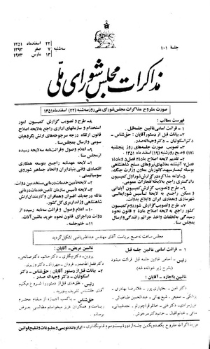 مذاکرات مجلس شورای ملی ۲۲ اسفند ۱۳۵۱ نشست ۱۰۱