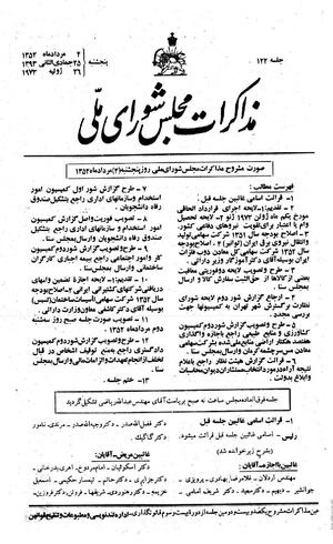 مذاکرات مجلس شورای ملی ۴ امرداد ۱۳۵۲ نشست ۱۲۲