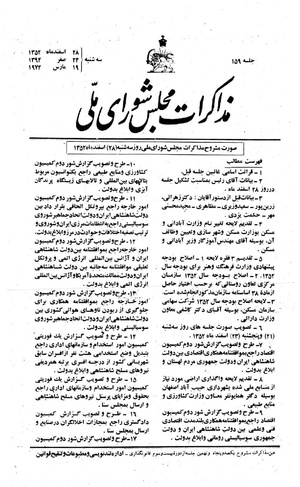 صورت مشروح مذاکرات مجلس شورای ملی روزسه شنبه (۲۸) اسفند ماه ۱۳۵