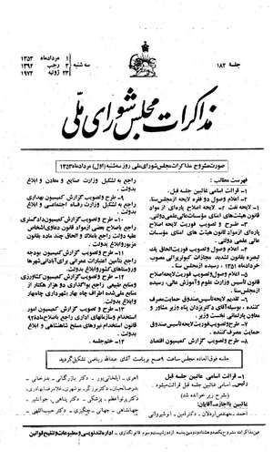 صورت مشروح مذاکرات مجلس روز ۱ امرداد ۱۳۵۳ نشست ۱۸۲