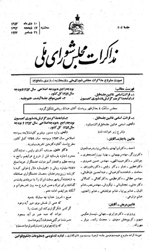 مذاکرات مجلس شورای ملی ۱۰ دی ۱۳۵۳ نشست ۲۰۲