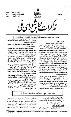 صورت مشروح مذاکرات مجلس روز ۱۵ دی ۱۳۵۳ نشست ۲۰۵