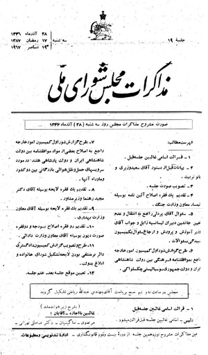 صورت مشروح مذاکرات مجلس روز سهشنبه ۲۸ آذر ۱۳۴۶ نشست ۱۹