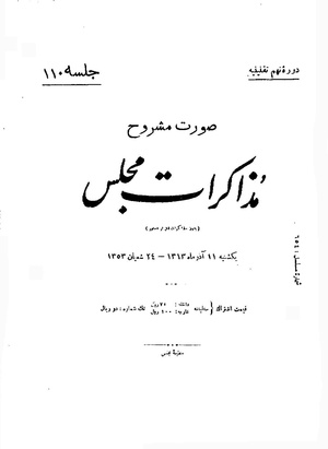 مذاکرات مجلس شورای ملی ۱۱ آذر ۱۳۱۳ نشست ۱۱۰