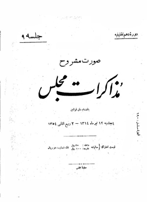 مذاکرات مجلس شورای ملی ۱۲ تیر ۱۳۱۴ نشست ۹