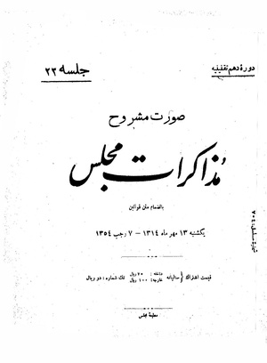 صورت مشروح مجلس یکشنبه ۱۳ مهر ۱۳۱۴