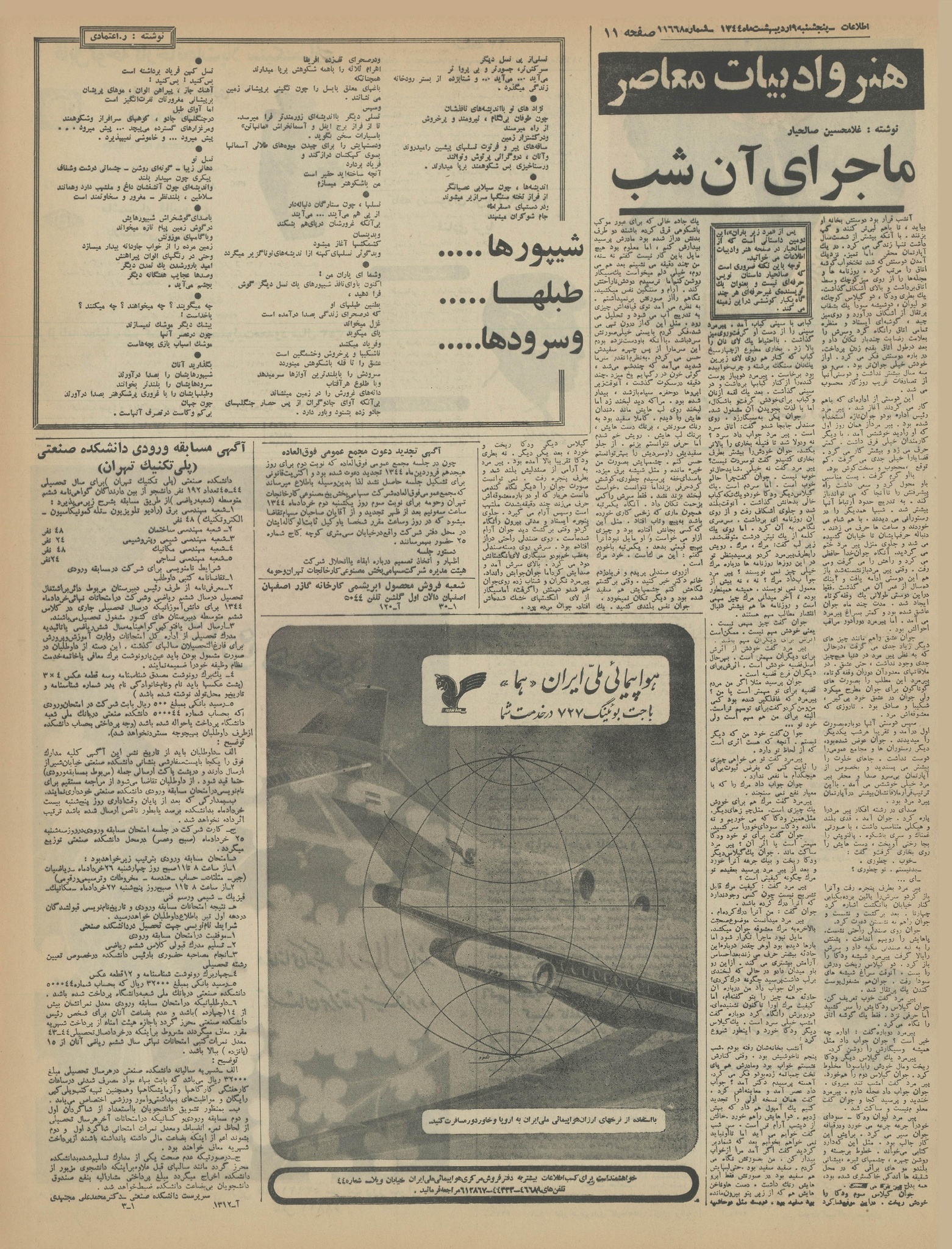 | کنونی | ۳۰ آوریل ۲۰۱۵، ساعت ۰۹:۵۷ | ۶٬۰۵۶×۸٬۰۱۶، ۲۰ صفحه (۳۳٫۹۹ مگابایت) | Bijan (گفتگو | مشارکتها) | {{PD-Iran}} رده:روزنامه اطلاعات سال ۱۳۴۴ |