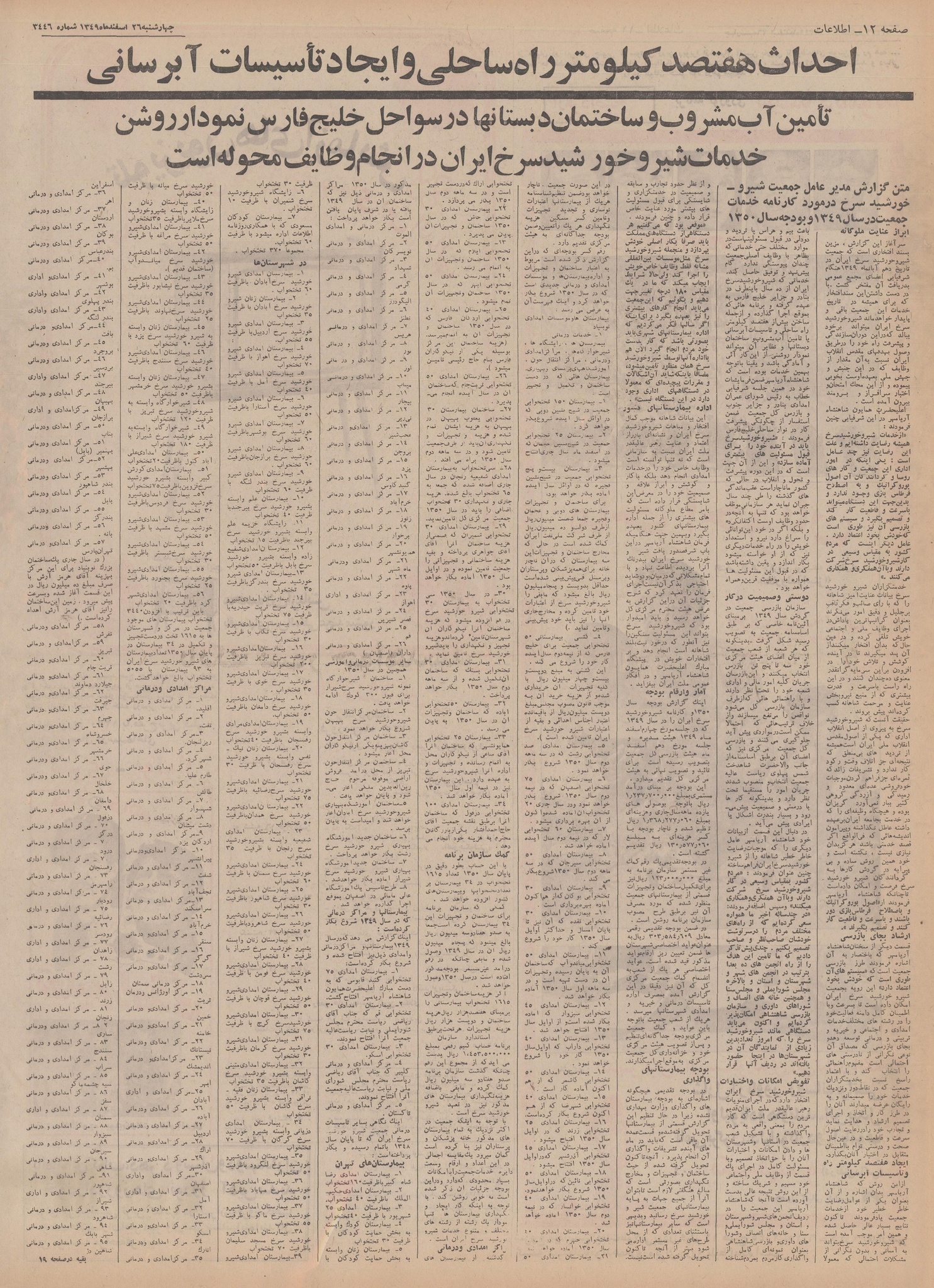| ۲۱ اکتبر ۲۰۱۴، ساعت ۱۸:۱۱ | ۲٬۴۳۳×۳٬۴۷۷، ۱۵ صفحه (۳۸٫۰۴ مگابایت) | Bijan (گفتگو | مشارکتها) | {{PD-Iran}} رده:روزنامه اطلاعات سال ۱۳۴۹ |