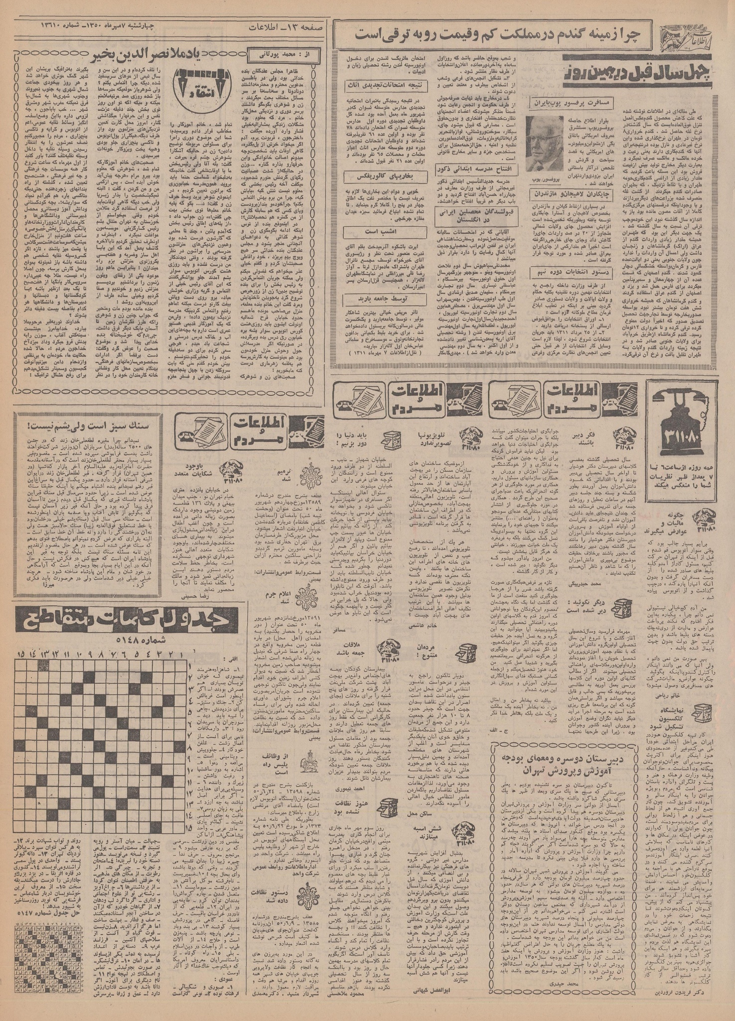 | ۲۱ اکتبر ۲۰۱۴، ساعت ۰۹:۲۸ | ۲٬۴۳۳×۳٬۵۲۷، ۱۳ صفحه (۳۲٫۸۵ مگابایت) | Bijan (گفتگو | مشارکتها) | {{PD-Iran}} رده:روزنامه اطلاعات سال ۱۳۵۰ |