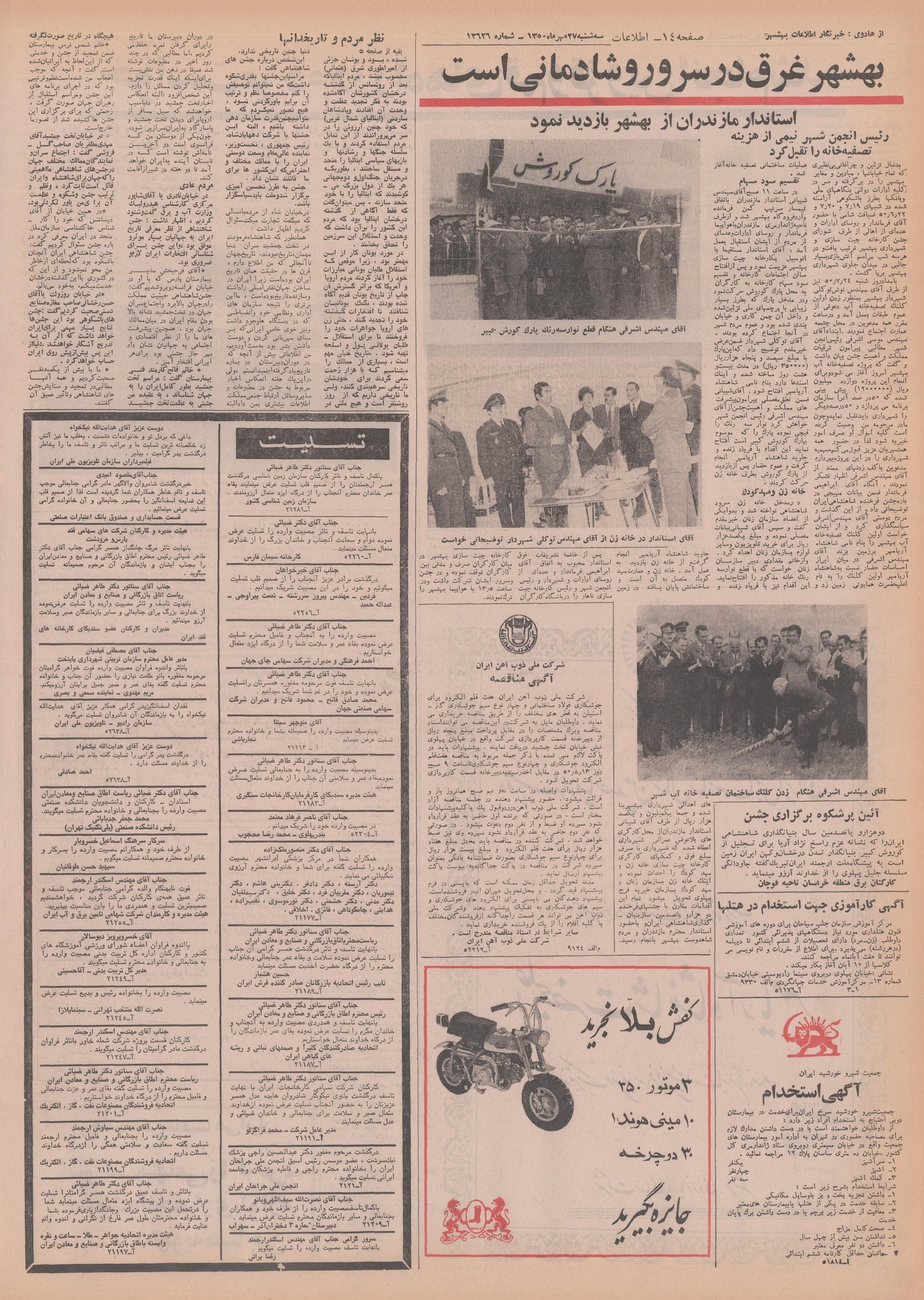 | ۲۰ اکتبر ۲۰۱۴، ساعت ۲۱:۰۷ | ۲٬۴۵۶×۳٬۵۲۷، ۲۷ صفحه (۷۱٫۱۱ مگابایت) | Bijan (گفتگو | مشارکتها) | {{PD-Iran}} رده:روزنامه اطلاعات سال ۱۳۵۰ |