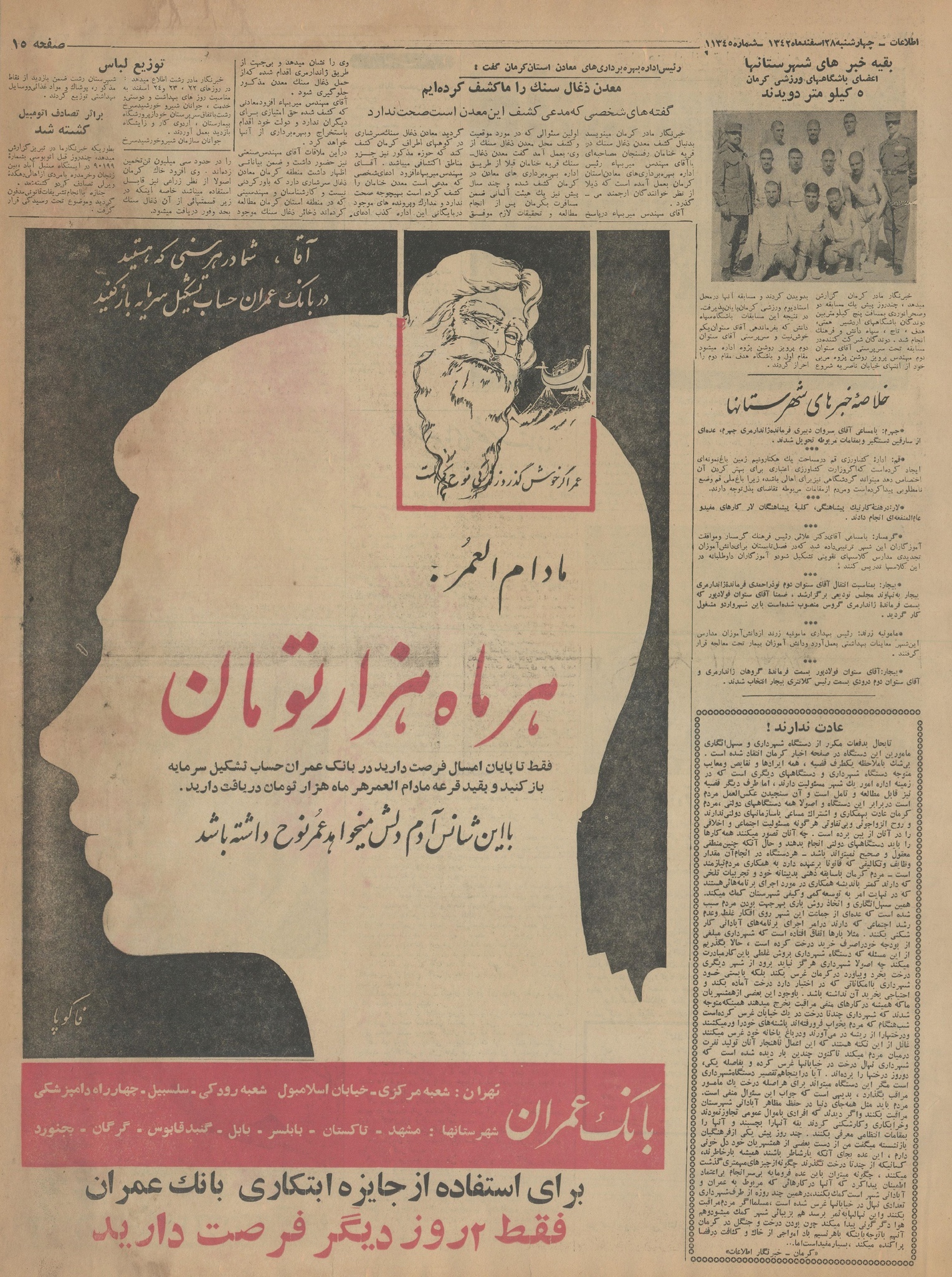 | ۲۲ ژانویهٔ ۲۰۱۵، ساعت ۱۹:۱۱ | ۵٬۸۹۵×۷٬۹۰۴، ۳۲ صفحه (۱۴۵٫۵۷ مگابایت) | Bijan (گفتگو | مشارکتها) | {{PD-Iran}} رده:روزنامه اطلاعات سال ۱۳۴۲ |