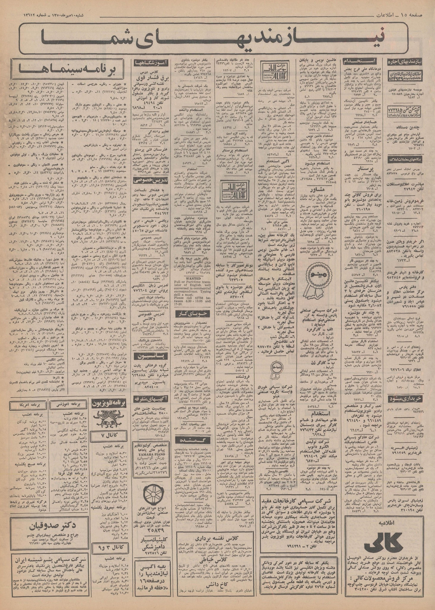 | ۲ نوامبر ۲۰۱۴، ساعت ۱۸:۱۵ | ۱٬۴۰۰×۲٬۰۰۰، ۱۳ صفحه (۶۹٫۷۸ مگابایت) | Bijan (گفتگو | مشارکتها) | {{PD-Iran}} رده:روزنامه اطلاعات سال ۱۳۵۰ |