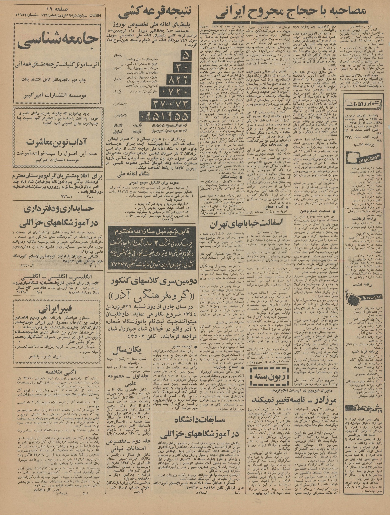 | کنونی | ۸ آوریل ۲۰۱۵، ساعت ۰۴:۱۴ | ۵٬۹۹۵×۸٬۰۱۶، ۲۰ صفحه (۳۳٫۹۲ مگابایت) | Bijan (گفتگو | مشارکتها) | {{PD-Iran}} رده:روزنامه اطلاعات سال ۱۳۴۴ |