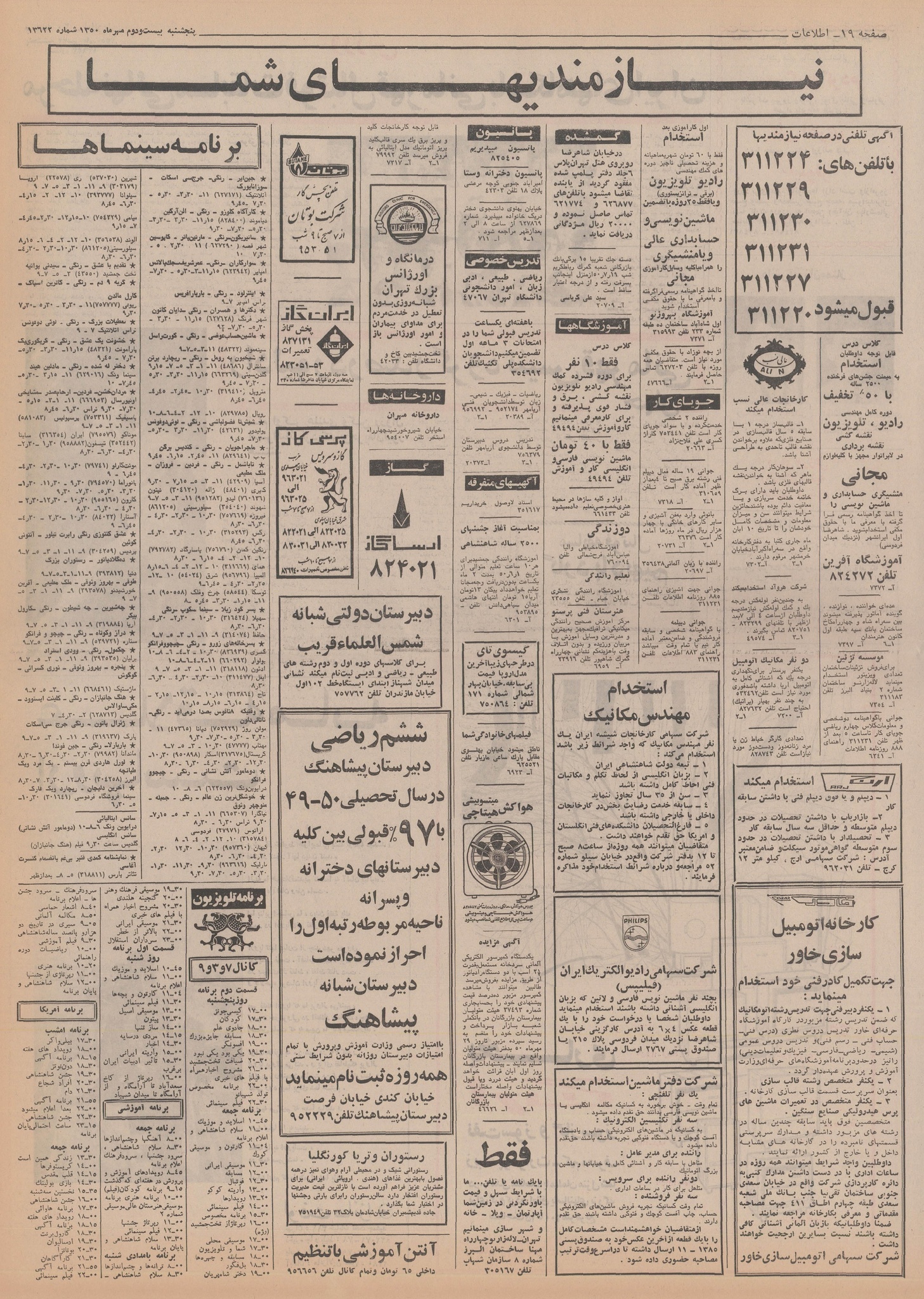 | ۲۰ اکتبر ۲۰۱۴، ساعت ۱۶:۳۹ | ۲٬۴۳۱×۳٬۵۲۷، ۴۳ صفحه (۱۱۲٫۱۲ مگابایت) | Bijan (گفتگو | مشارکتها) | {{PD-Iran}} رده:روزنامه اطلاعات سال ۱۳۵۰ |