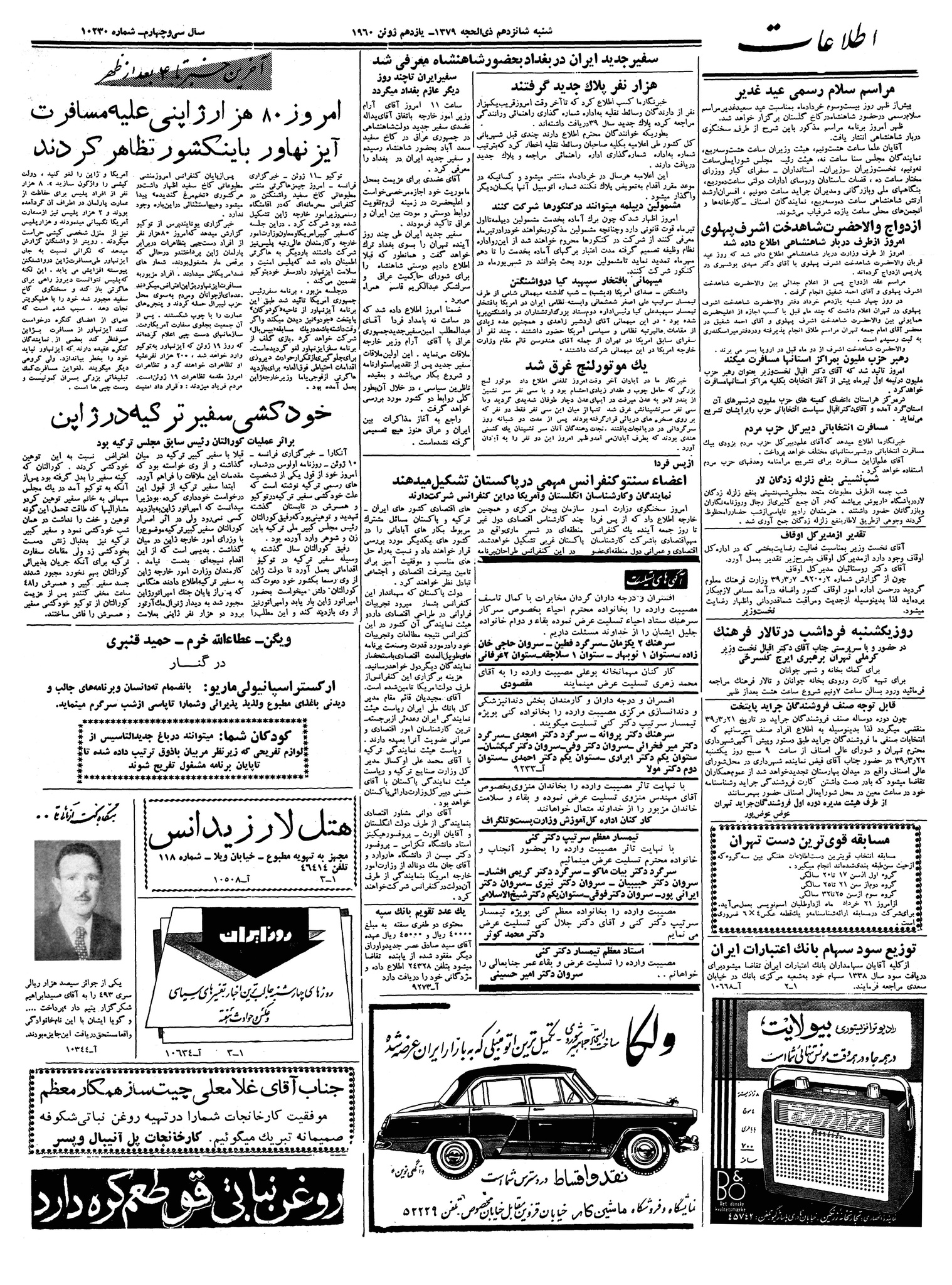 | کنونی | ۳ مهٔ ۲۰۲۳، ساعت ۰۴:۴۶ | ۱۰٬۵۸۱×۱۴٬۲۷۰، ۲۴ صفحه (۸۶٫۴۳ مگابایت) | Bijan (گفتگو | مشارکتها) | == خلاصه == {{PD-Iran}} رده:روزنامه اطلاعات سال ۱۳۳۹ |