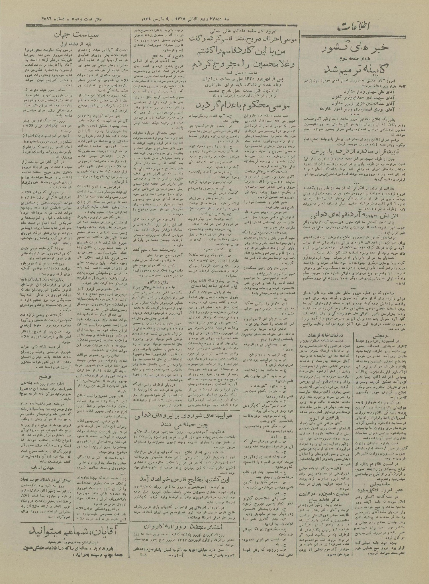 | کنونی | ۲۳ سپتامبر ۲۰۲۵، ساعت ۰۳:۳۷ | ۴٬۵۵۲×۶٬۲۹۵، ۸ صفحه (۷٫۶۷ مگابایت) | Bijan (گفتگو | مشارکتها) | == خلاصه == {{PD-Iran}} رده:روزنامه اطلاعات سال ۱۳۲۶ |