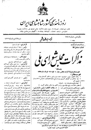صورت مشروح مذاکرات مجلس روز ۱شنبه ۲۱ خردادماه ۱۳۲۹
