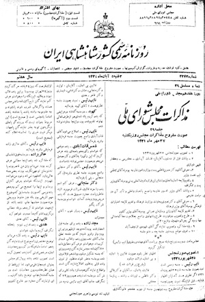 شامل کلیه قوانین مصوبه و مقررات - گزارش کمیسیونها - صورت مشروح مذاکرات مجلسین - اخبار مجلس - انتصابات - آگهیهای رسمی و قانونی
