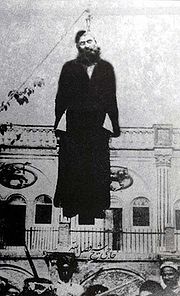 - چند نفر علمای گرگ سیرت محض خاطر چند نفر مغرضین که حکم تبعید آنها شده بود نگذاشتند تبعید شوند علاوه در خانه رئیسالعلما جمع شده با اشرار و سرباز در پشت بام رفته حکم بجهاد نموده قریب یک ساعت سینه ما بیچارگان را هدف گلوله ساخته چهار نفر مقتول و چند نفر مجروح[۲۱]